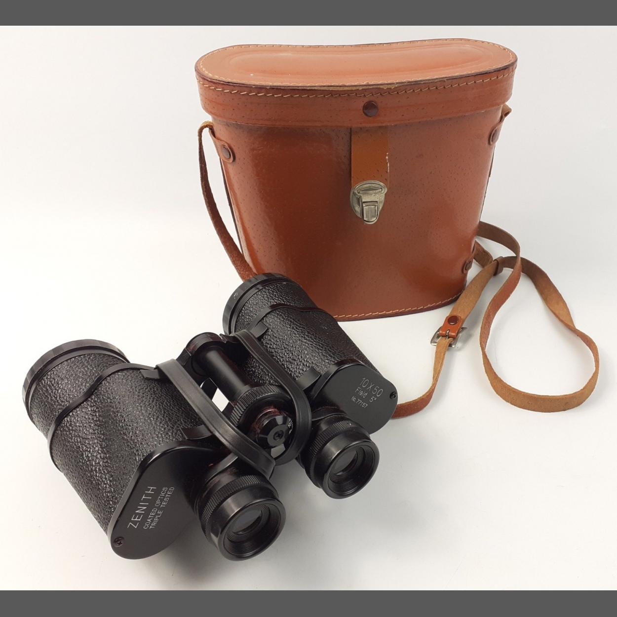 A set of ZENITH 10x50 field glasses in leather case. Optically good