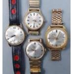 A selection of 4 vintage gent's watches to include a PILOT 17 jewels, a ROTARY AVENGER with detached second hand and crack to crystal, a MuDDu 25 jewels incabloc automatic and a rather nice EVERITE which is running