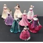 Eight COALPORT figurines to include Debutante Lesley, Eternity, Lucy, Carrie, True Love, Debutante of the year 1996, Springtime and a Minuets Jessica