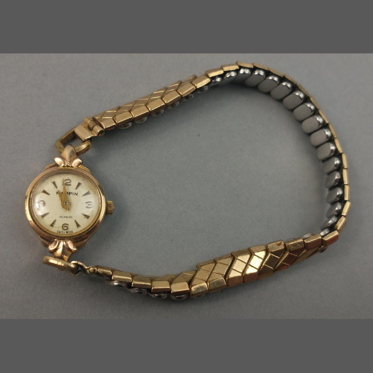 A 9ct gold cased presentation watch in case with inscription on rear dating to 1964 Furness Ship Building Co Ltd on base metal expanding bracelet