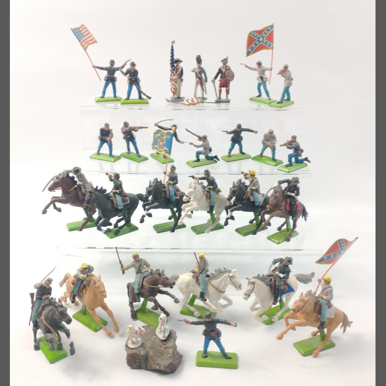 A collection of BRITAINS detail 1970s metal based American Civil War cavalry and infantry incorporating 12 mounted cavalry and 12 foot soldiers plus others