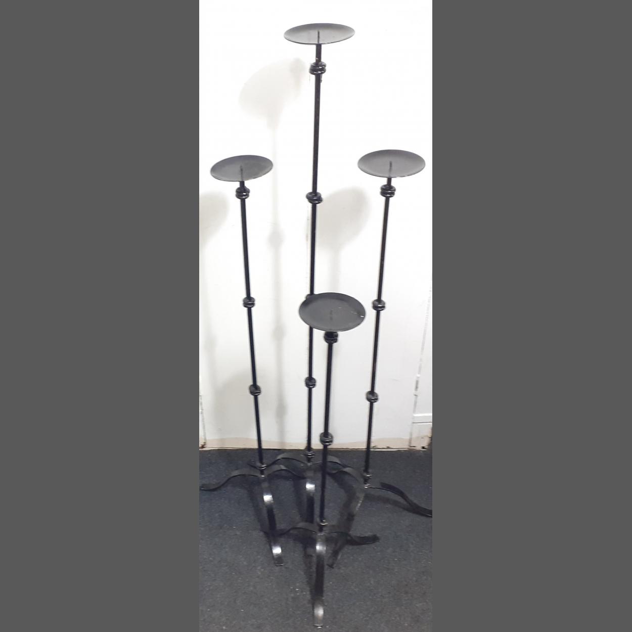 Four tall church brass candle holders painted black. Tallest is 120cm high- smallest one is 77cm high.