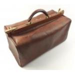 Edwardian Gladstone brown leather bag beautifully crafted with brass locks and catches. Original cotton lining. Length 45cm x 25cm approx. About 22cm in height. In overall good condition.