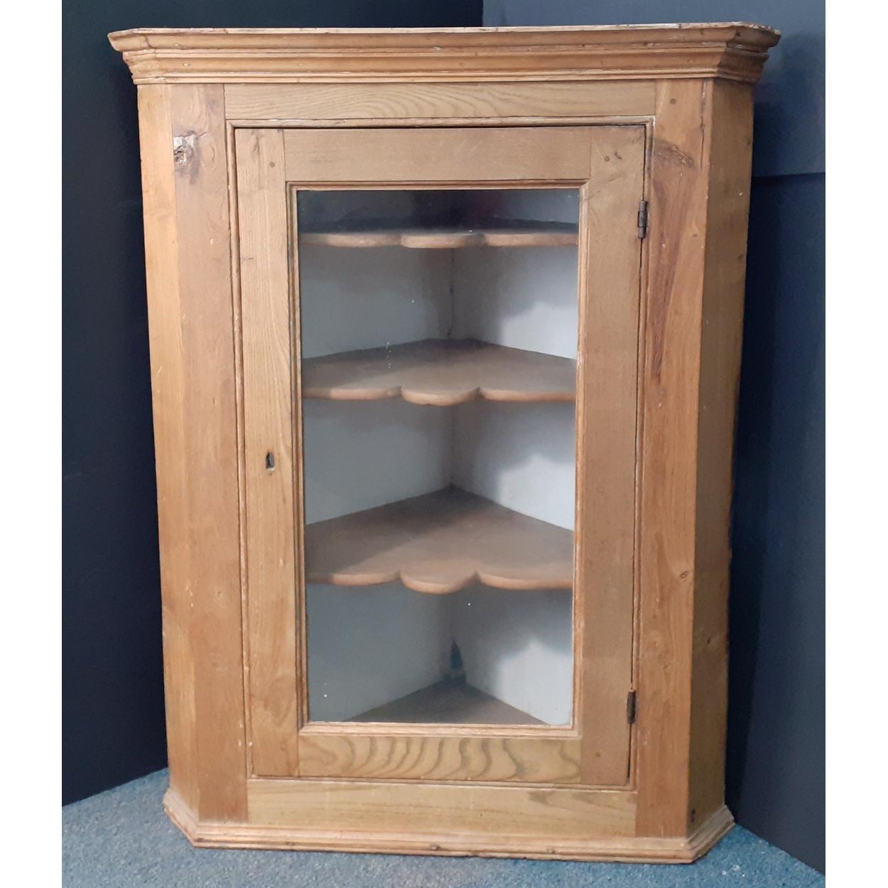 An ANTIQUE pine corner cabinet c1890 with glazed door and four shelves - 100cm height x 80cm width x 45cm depth approx