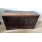 ANTIQUE A lovely old SCOTTISH lidded kist with handcarved flora decoration - dimensions 1m length x 40cm deep x 55cm height approx