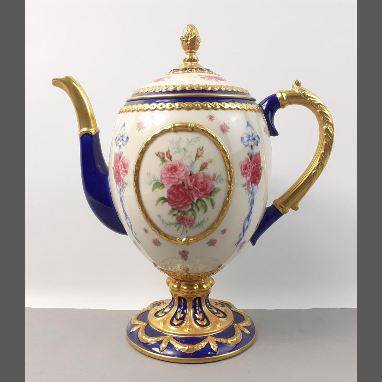 A HOUSE OF FABERGE Egg imperial teapot. 23cm tall approx. In good condition