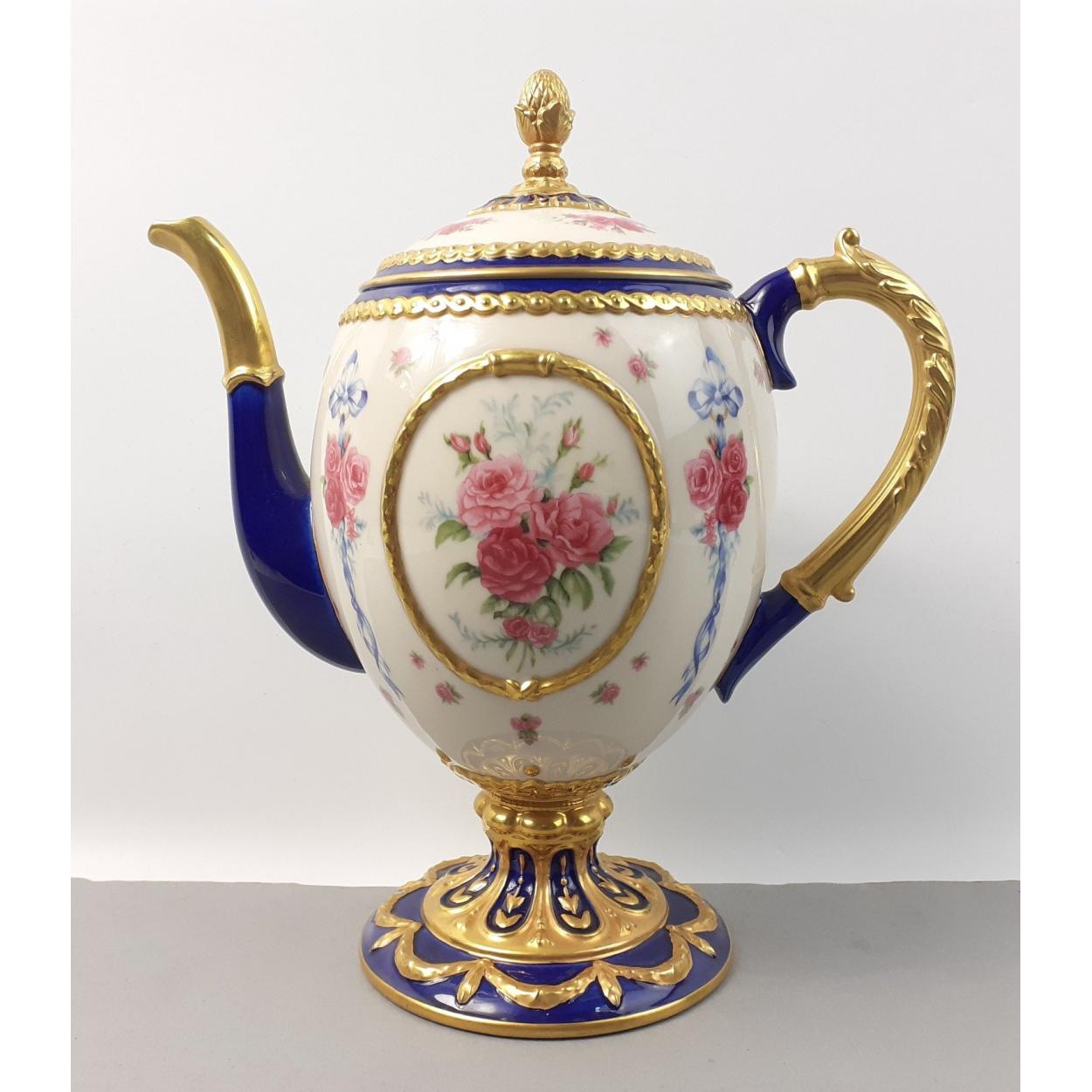 A HOUSE OF FABERGE Egg imperial teapot. 23cm tall approx. In good condition