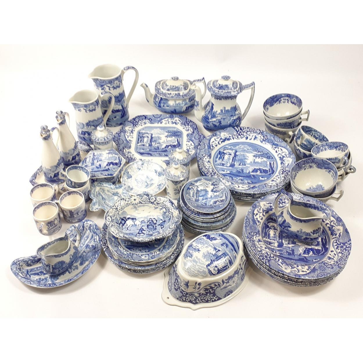More blue and white china - a useful lot of plates, jugs, decorative items including Spode