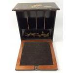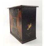 An exceptionally attractive early 20th century lacquered Oriental desk tidy with 4 slots and pen tray beneath. An unusual piece