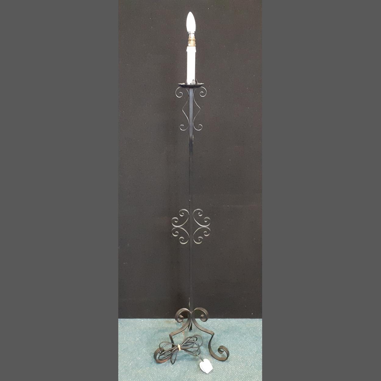 An electrified cast iron candle stick lamp standing approx 155cm high
