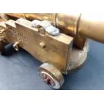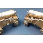Two fantastic nautical vintage miniature brass cannons both marked Trafalgar 1805. 17cm long. Each stamped made in Scotland.