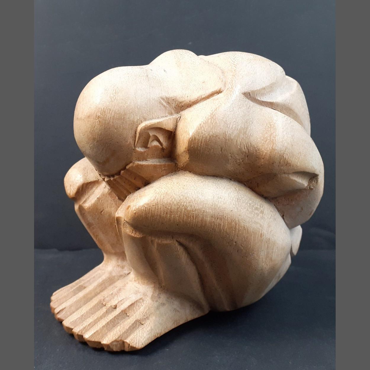 AWE GAWD TAX BILL! A wooden carved figure - Despairing man. Height 10cm.