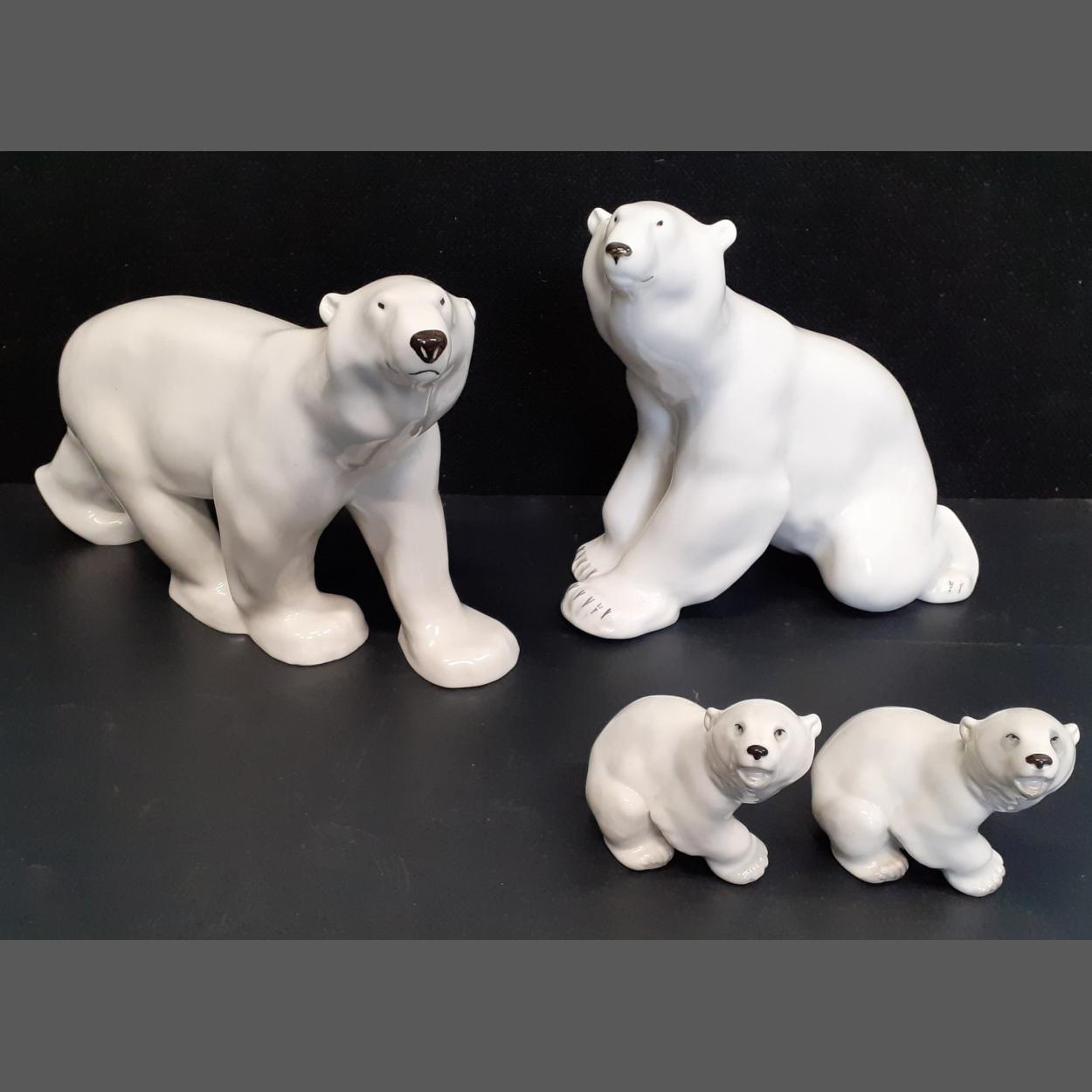 A family of four USSR polar bears to include an alarmingly large pair by LOMONOVSOV, the largest measuring 27cm approx. No damage
