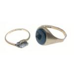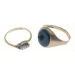 A worn fully hallmarked gent's ring, size P, gross weight 2.6g approx plus a ring stamped 18ct & platinum set with 2 diamonds (tested), 1 stone missing, size M, gross weight 1.88g approx