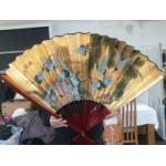 A very large Oriental wall fan decorated with cranes, measures 117cm fully extended