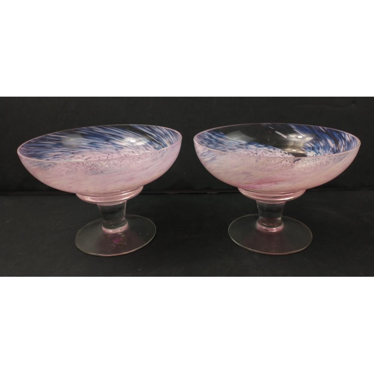 Two lovely CAITHNESS compotes with stickers 14cm dia and standing 10cm tall approx. Both in excellent condition
