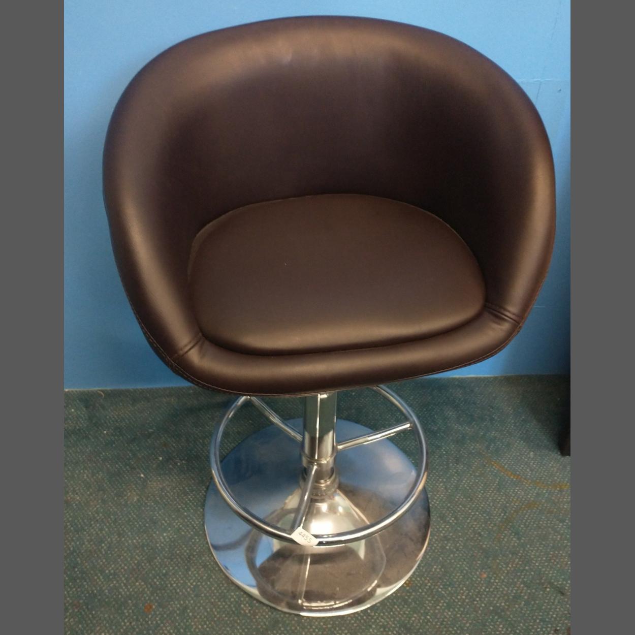 A faux leather low back bar stool type swivel chair, 90cm tall