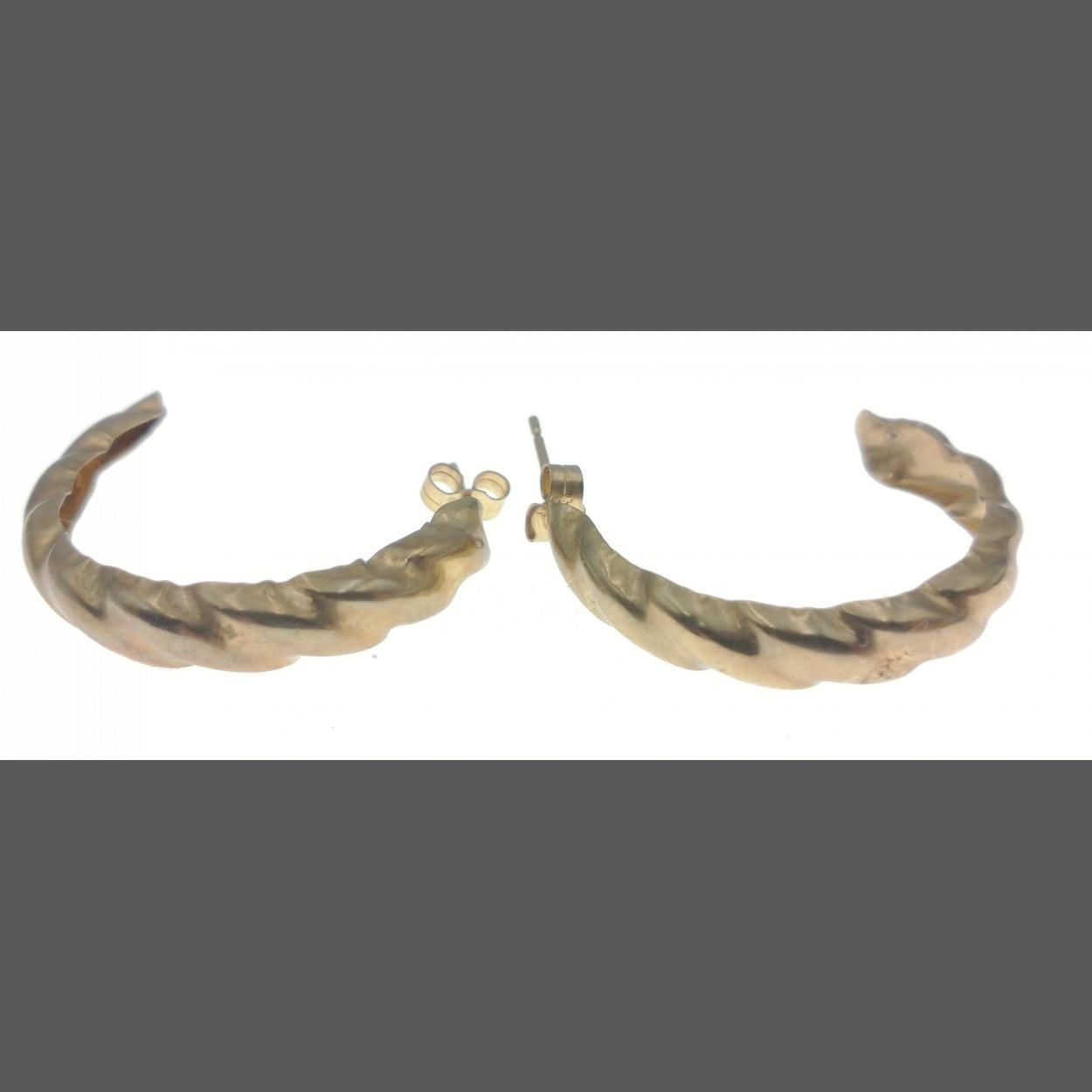 A pair of unmarked yellow metal hoop earrings unreactive to a magnet, weight 1.32g approx