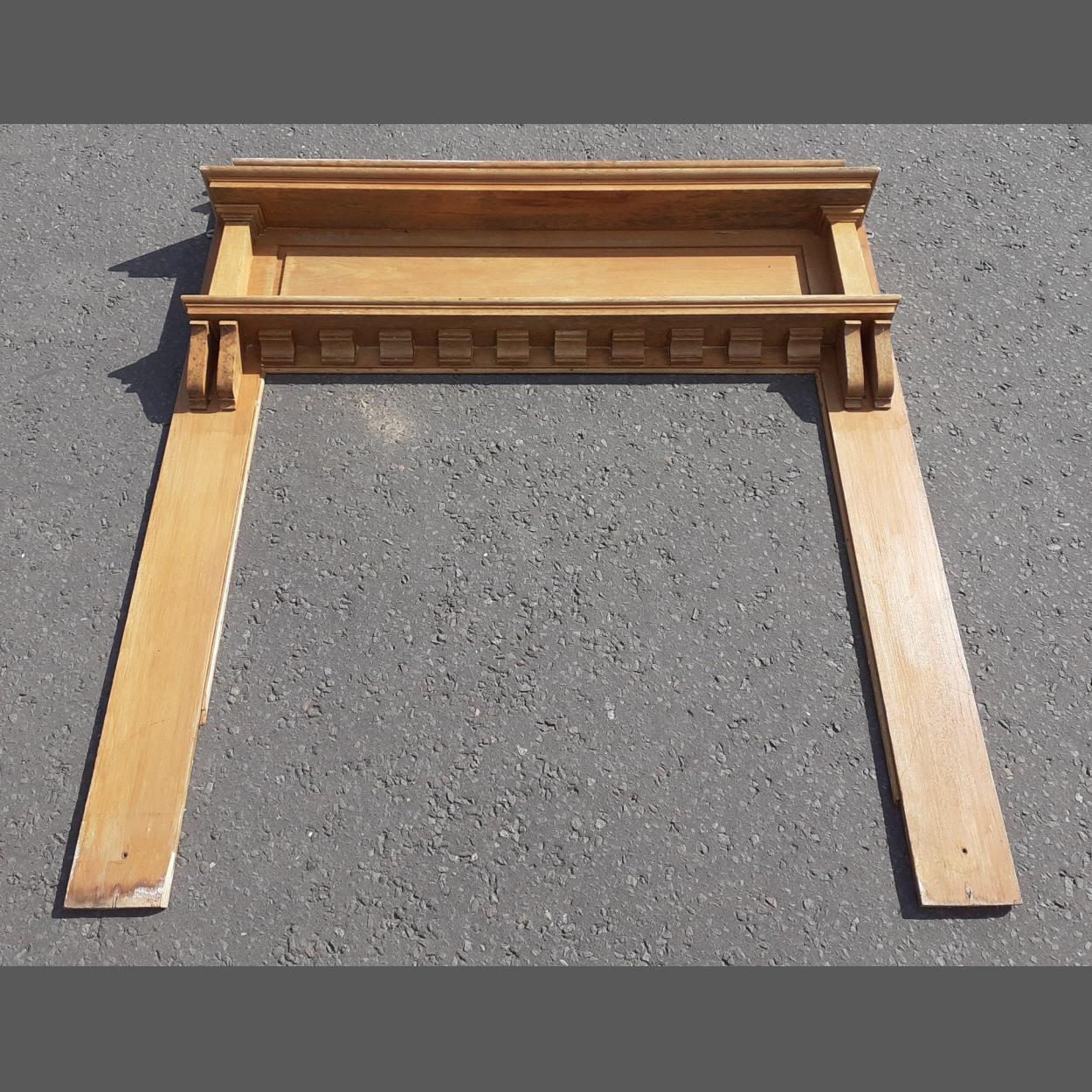An antique Edwardian style pine fireplace mantel H160cm x W140cm