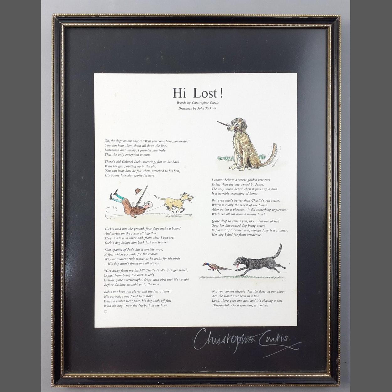 A framed signed poem by CHRISTOPHER CURTIS called Hi Lost!, frame size 37x28cm approx