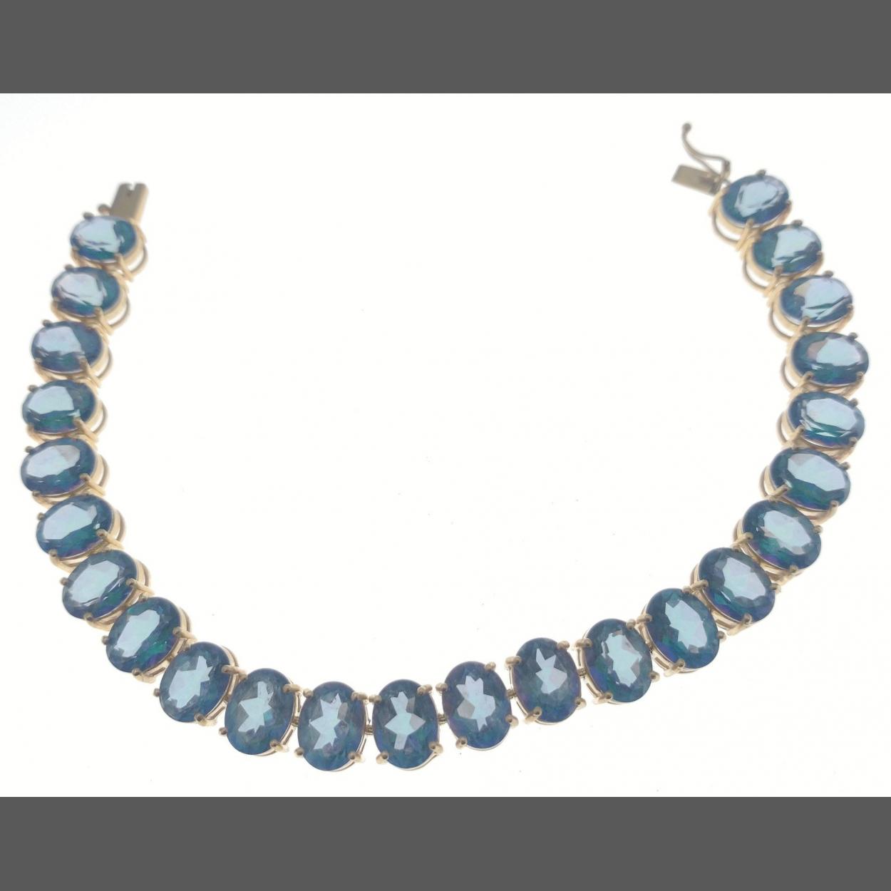 A 375 stamped fine quality INDIAN JAIPUR blue gemstone (light blue sapphires?) bracelet - gross weight 24.51g approx, length 19cm approx