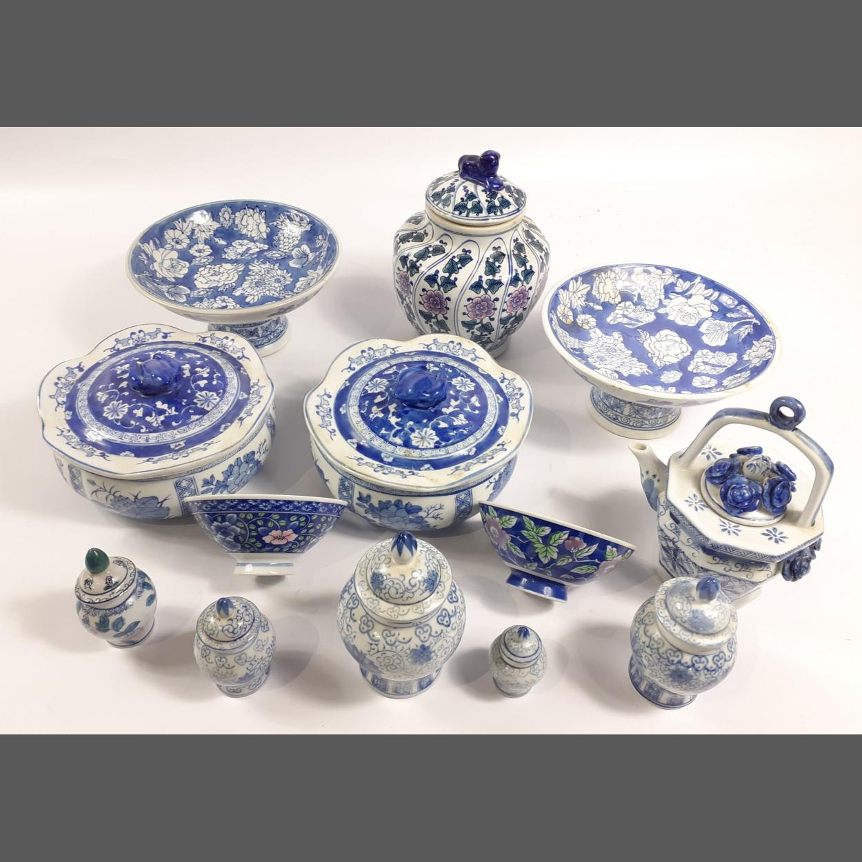 A mixed blue and white ceramic lot to include many decorative items