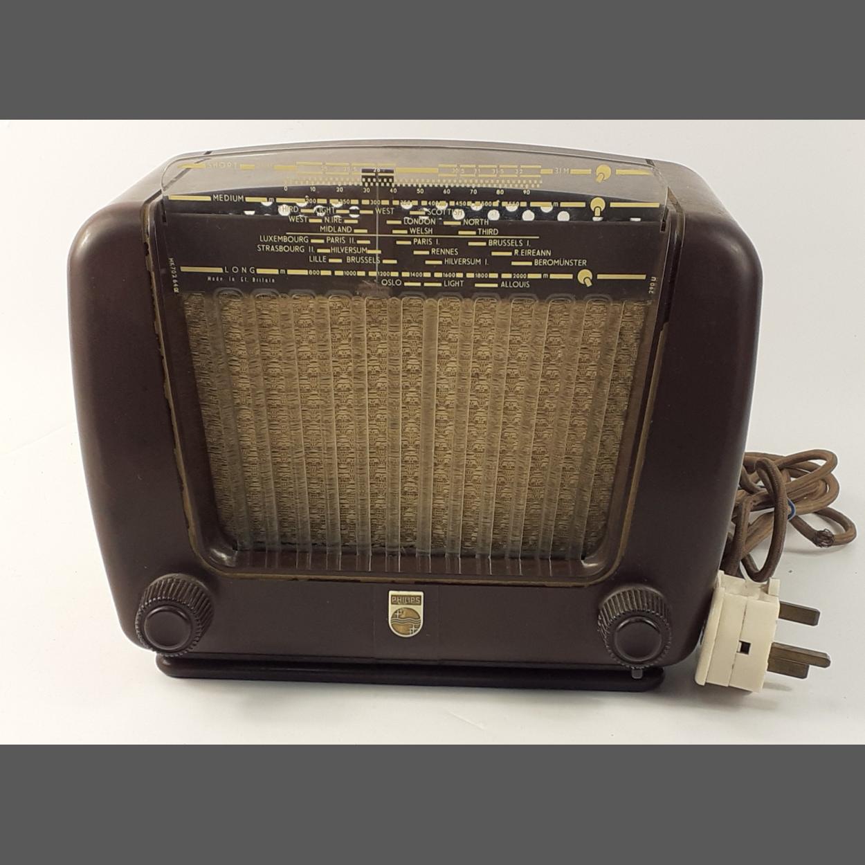 A lovely vintage PHILIPS BG290U/15 British made Bakelite radio with plastic header and front grille