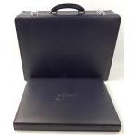 Two boxed SUISSINE cutlery sets, one in a briefcase and a further similar case containing a set of 12 steak knives