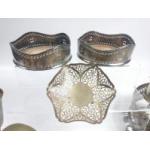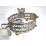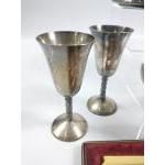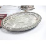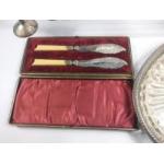 An EP tray 36cm approx, with glass insert, 2 goblets, 2 wine holders, large ladle, EP basket and a pair of fish knives