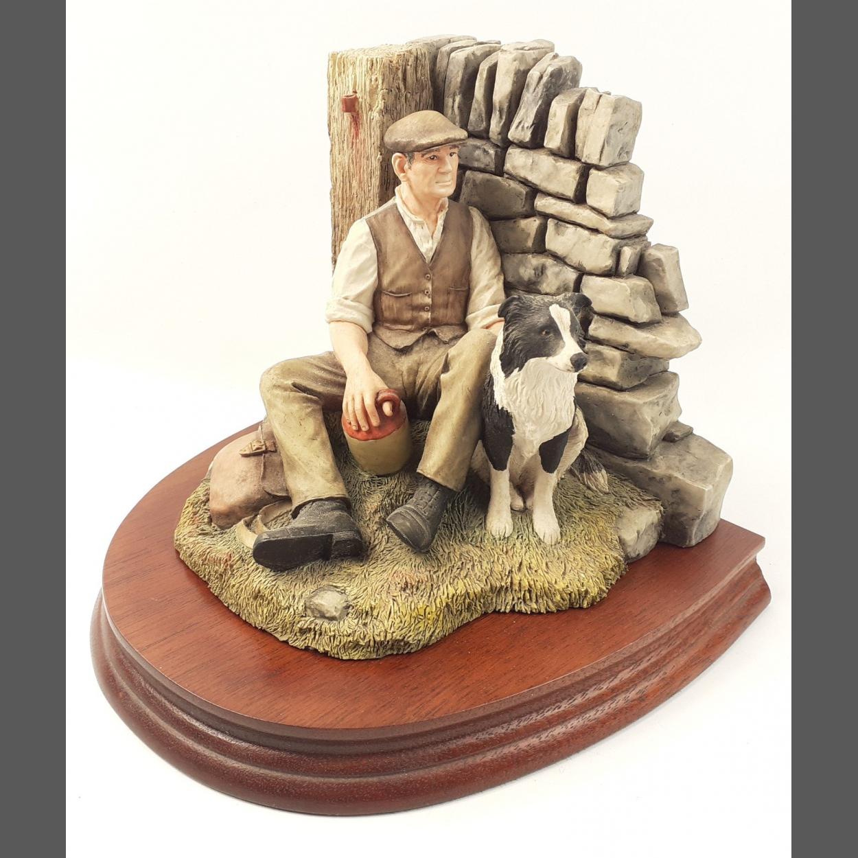 A BEAUTIFUL BORDER ARTS ornament with farmer and his dug contemplating life. Model Number L158.