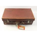 Two vintage leather suitcases in good useful condition. Measurements are given for the larger one which has an attached original Canadian Pacific baggage label.