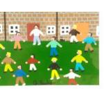 An original GORDON BARKER (English Naïve school) acrylic on paper of a Guy Fawkes fireworks scene. Frame size 45x35cm approx, image 34x24cm approx