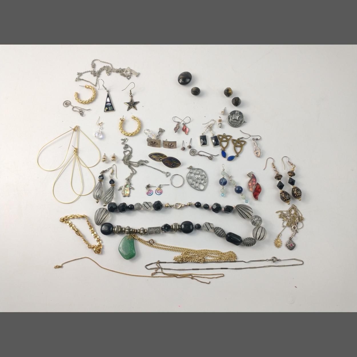 A small collection of costume jewellery to include necklaces, earrings, pendants etc.
