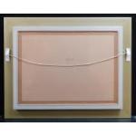 An attractive large nicely framed print reminiscent of a Vettriano study showing pretty female in silk dress with billowing curtains. 100 x 80cm approx.