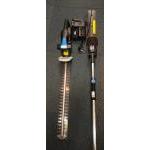 A GTech Ultimate Blade cordless hedge trimmer without charger cable(available to order from Amazon). A MacAllister hedge trimmer with charger.