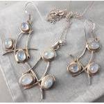 A small silver lot - to include 3 silver brooches and 1 other gilt one. A very pretty hard stone silver pendant on a silver chain with matching silver earrings