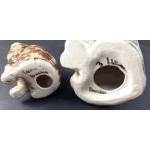 Two ceramic cats signed to base, both with glass eyes, the larger a grey tabby 22cm tall approx, the smaller brown tabby 16cm approx. Both in lovely condition