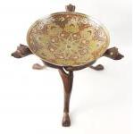 An all-in-one wooden carved cat head stand (30cm tall approx), with an elaborately decorated Asian brass bowl 25cm dia approx