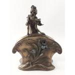 An Art Nouveau inspired spelter letter rack, 21cm tall approx. Very stylish and very well modelled, in excellent condition