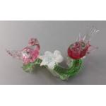 A striking, unusual art glass grouping of 2 wrens on a bench, 25cm long approx. In good condition.