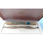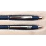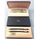 A CROSS classic black 2501 ball pen and pencil set along with a boxed gold plated CROSS pencil with personalised applied seal and also a Cross refill.