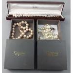 Three boxed strings of faux pearls including an attractive twin string approx 44cm long