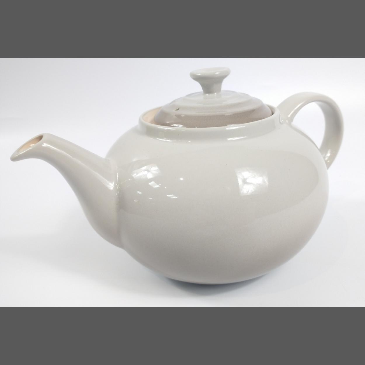 An unused LE CREUSET 1.3l teapot in dove grey. No damage.