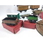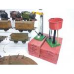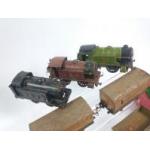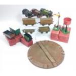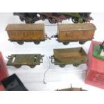 A rather wonderful old HORNBY train set in well-used condition, comprises 3 clockwork locos including 1 GNER cast iron one, 3 boxed rolling stock, and 2 boxed accessories