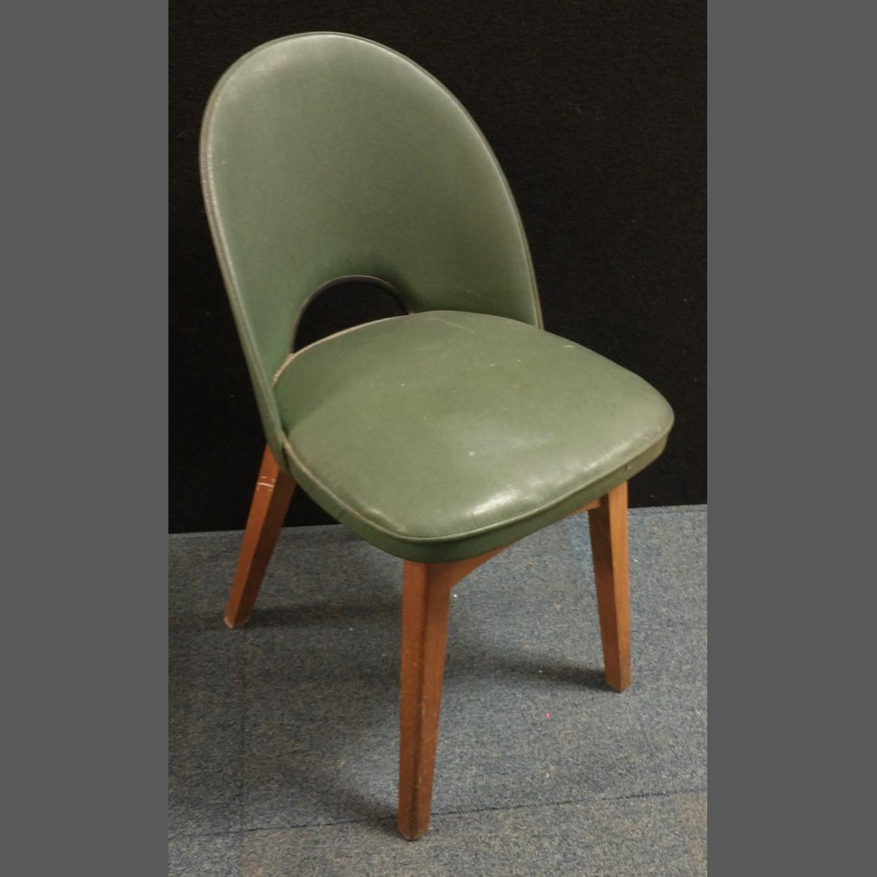 A retro dining chair c1950s/60s upholstered in teal faux leather with wooden legs