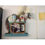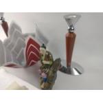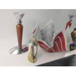 A PAINTED PONY Comanche War Pony (1452) in box, lovely condition plus 2 Oriental figurines and a pair of modern decorative wood stem candle sticks (24cm high) plus a red handkerchief bowl