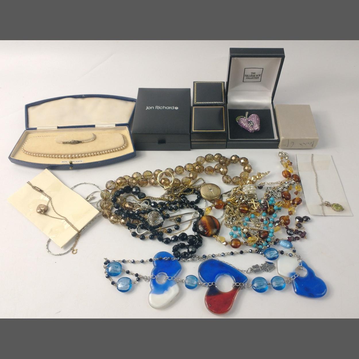 A super lot of good quality costume jewellery to include beads, brooches, a beautiful cased marcasite pearl set and an attractive apple style brooch