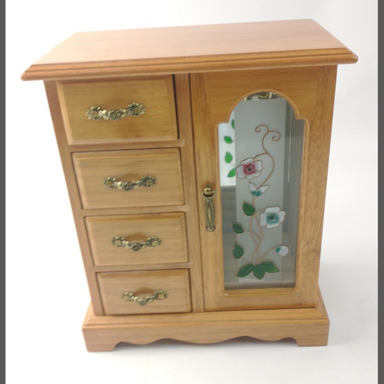 A pretty wee cabinet style jewellery cabinet 26cm tall. Attractive and in good condition