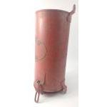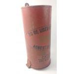 An interesting DECORATIVE fire storage tin once containing asbestos cloths, thankfully now empty 36cm tall