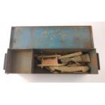 A HANDY 8vintage metal tool box with double handle and great patina W60xD16xH15cm approx